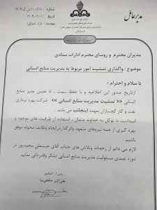 از تاریخ صدور حکم تا تعیین سرپرست مدیریت منابع انسانی ، با حفظ سمت حافظینیا، مدیرعامل شرکت بهرهبرداری نفت و گاز گچساران عهده دار این مسئولیت میباشد.