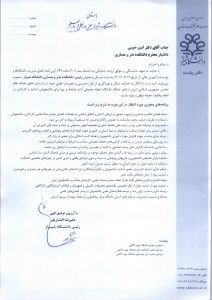 ایشان همچنین در نامهای جداگانه از زحمات دکتر خلیل حاجیپور«ریاست سابق دانشکده هنر و معماری دانشگاه شیراز» تقدیر و تشکر کردند.