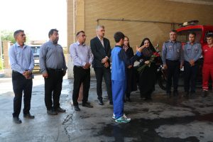 در ادامه مراسم، اشکان زمانی، دانشآموز کلاس ششم، با هنرنمایی خود و کلماتی پر از محبت، از نیروهای آتشنشانی قدردانی کرد و این مراسم را بهعنوان نمادی از قدردانی و احترام به فداکاریهای این قهرمانان واقعی در شهرستان گچساران ثبت کرد.